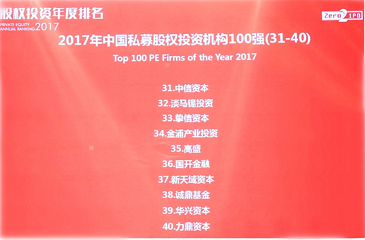 金浦产业投资基金管理有限公司荣获2017年“中国私募股权投资机构100强”称号